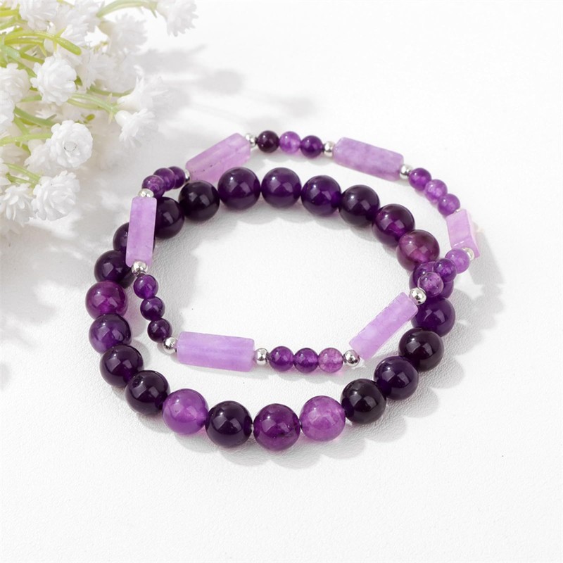 - 【Handmade Beaded Bracelets】:We used natural amethyst stones, each bead is carefully selected and hand strung on good elastic ropes. Bracelet size can be adjusted to fit most people's wrists.