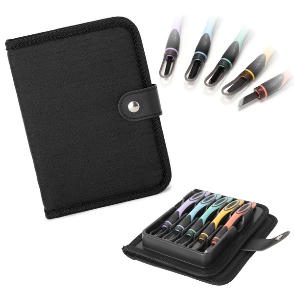 Moribe Creation CKT-167 Chisel Set, 2-Way Grip with Safety Guard, Integrated Soft Tray, Black, Right Handed
