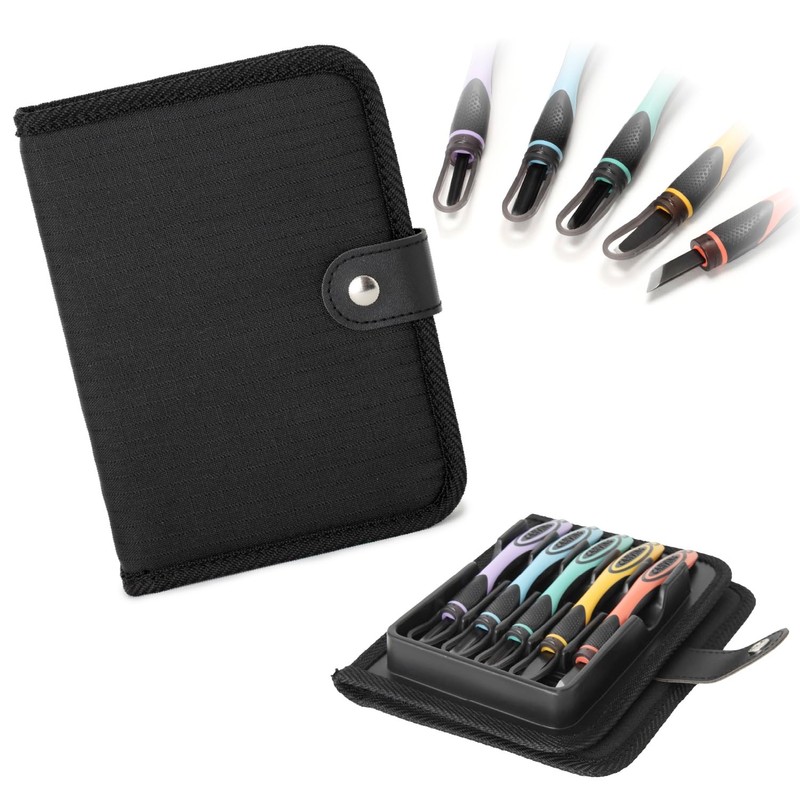 - Chisel set with soft tray to hold chisel securely