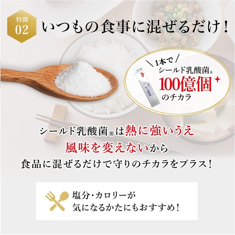 - [Just mix it into your regular meals!] The power of 10 billion Shield Lactobacillus bacteria in one supplement. Shield Lactobacillus supplements are heat resistant and do not change flavor, so just mix them into your food to add protection! Recommended for those who are concerned about salt and calories! Assists in making it easy for the whole family to continue!