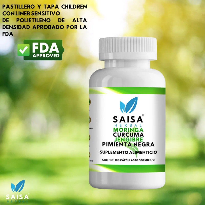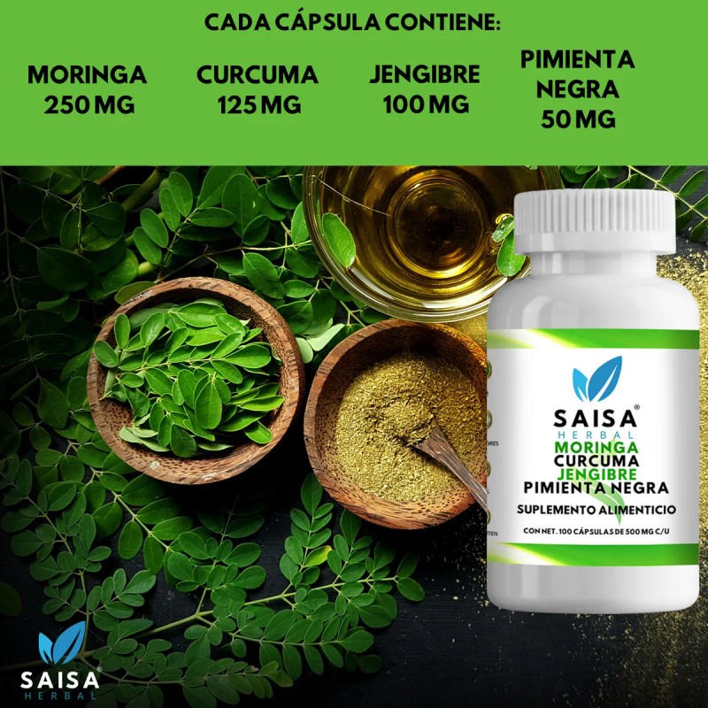Moringa Crcuma Jengibre Pimienta Negra 100 Cps SAISA HERBAL Inmunidad y Desinflamacin Natural Potenciado