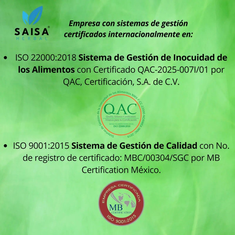 Moringa Orgánica 100% Pura 100 Cáps SAISA HERBAL | Suplemento Alimenticio | Energía | Bienestar | Apoyo al Sistema Inmune | Control de glucosa | Fortalece defensas