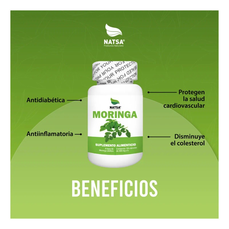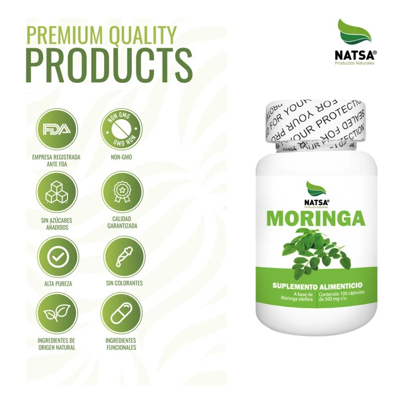 Moringa Premium 100 Cápsulas | Regula Azúcar, Reduce Colesterol y Antiinflamatoria