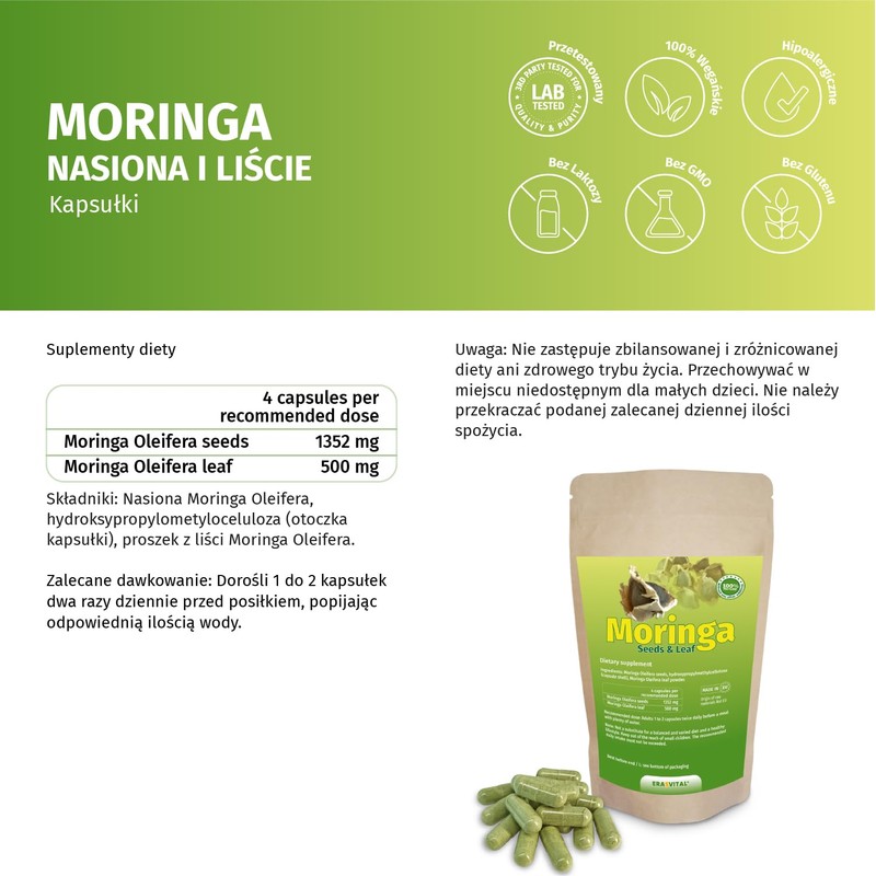 - Convenient intake: Moringa seeds and powder capsules are easy to dose and ideal for everyday use. No preparation required, perfect for an active lifestyle.