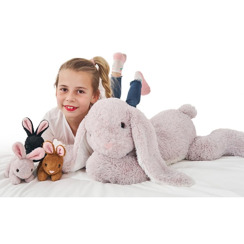 MorisMos Easter Rabbit Cuddly Toy XXL, 60 cm Giant Plush Toy Rabbit with 3 Babies, Large Plush Bunny Soft Toy, Easter Birthday Gift for Children, Boys, Girls