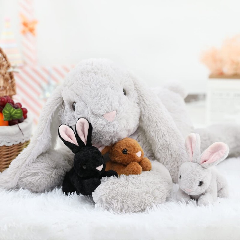 - Large plush bunny with 3 baby: rabbit mom: 60 × 24 × 20 cm tall, with 3 small babies in the belly, is an educational toy that stimulates children's creativity and imagination. Can improve children's hand-eye coordination and promote children's teamwork.
