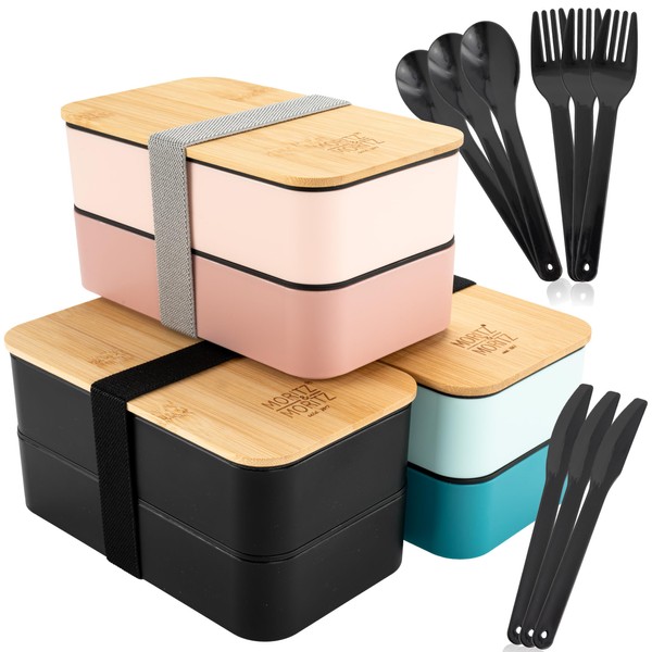 Moritz & Moritz 3er Mix Set Bento Box Japanisch - Perfekte Lunchbox für Erwachsene und Kinder - Brotdose mit Fächern - Ideal für die Arbeit, Schule und Unterwegs