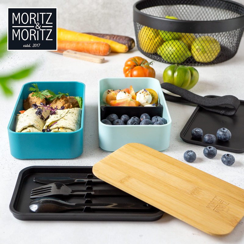 Moritz & Moritz Bento Box Kinder in Blau – Perfekte Lunchbox für Kinder und Erwachsene - Brotdose mit Fächern – Ideal für die Arbeit, Schule und unterwegs