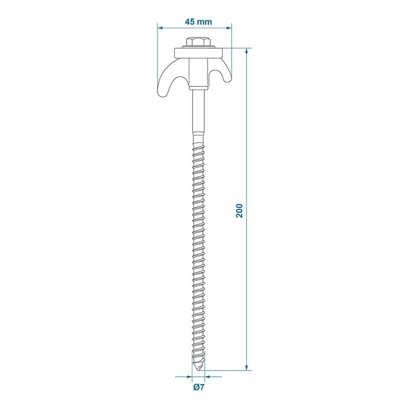 Length: 200 mm, diameter: 7 mm, head width: 45 mm.