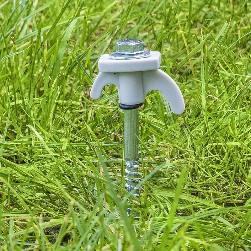 - 20 cm long screw pegs with special head for maximum hold - the pegs can be easily screwed into the ground with a 13 nut (socket wrench)