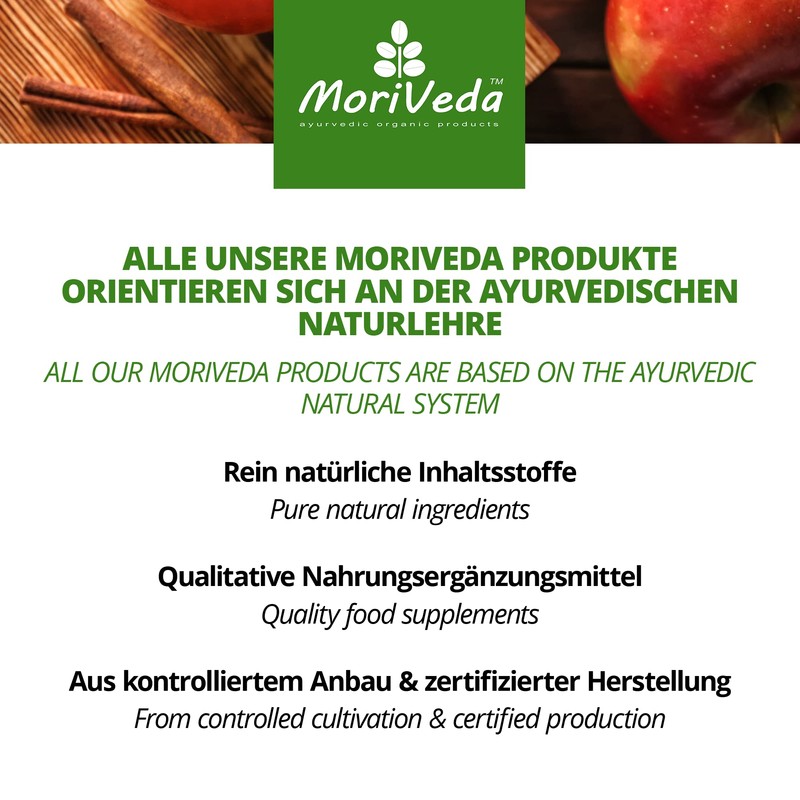 - Natural Ayurveda quality: MoriVeda stands for high-quality and natural dietary supplements without chemical additives, which are strongly based on Ayurvedic natural teaching.