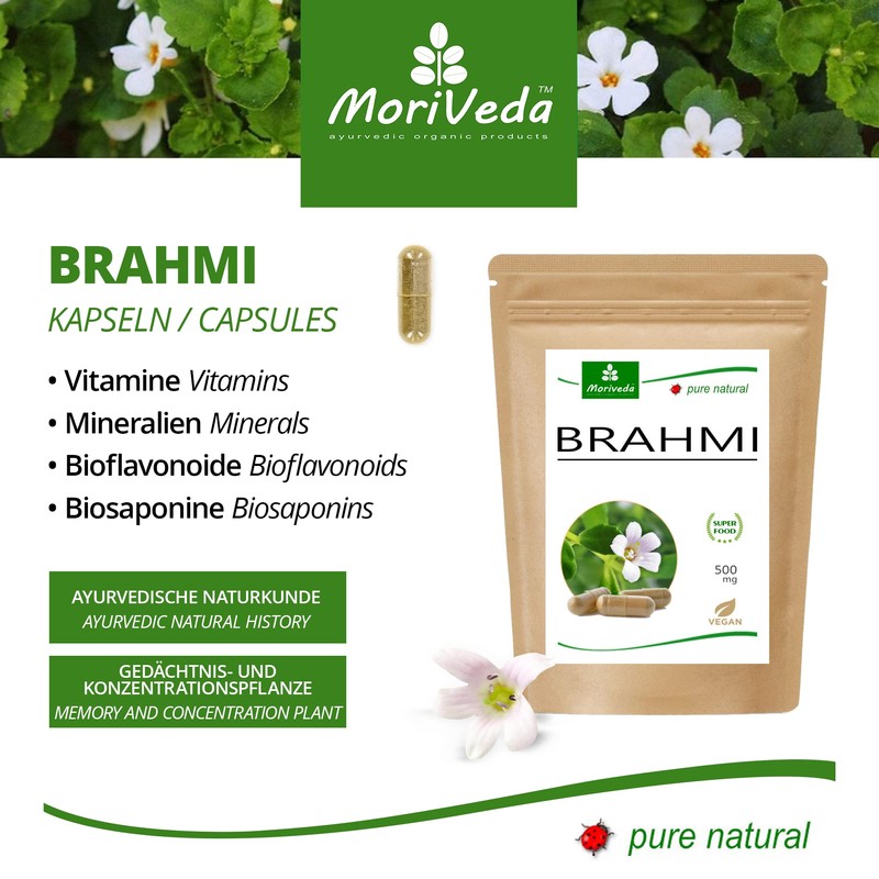 • Brahmi is traditionally also known as a memory and concentration plant, has a very high bioavailability and is one of the oldest and most well-known plants in Ayurvedic science.