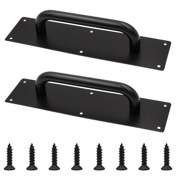 Mormchlots 2Pcs Large Black Stainless Steel Heavy Duty Barn Door Pulls, Pull Push Plate Handle, Pull and Push Plate Handle for Wooden or Composite Door(1 Pair)