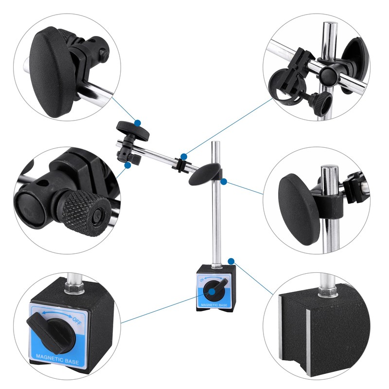 • 【Dial Test Indicator Tester Gage】: Mornajina magnetic dial indicator holder set with fine adjustment long arm, on and off switch, is made of steel hardened, professional and durable. Universal rotating shaft with fine-tuning knob for more accurate measurement. 0-1.0" Tester Gage, Dial Test Indicator Graduation 0.001" Precision.