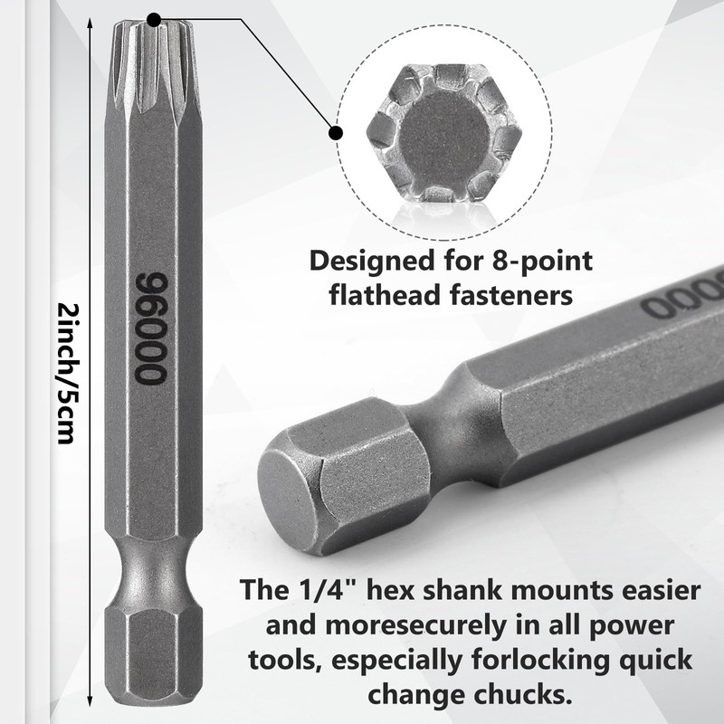 - Packing Include: you will received 4 pieces of 2" long 8-point star bits, designed for 8-point flathead fasteners, providing ample quantity for your daily needs
