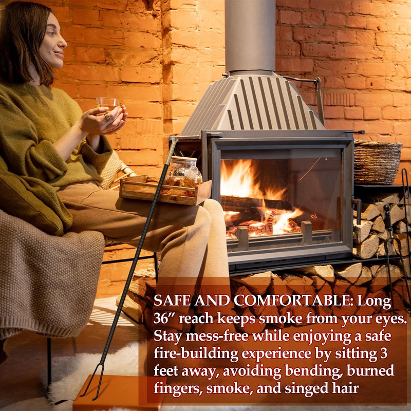 - Size and Comfort: campfire poker with a length about 36 inches, you can safely and comfortably manipulate your fire from a safe distance; This feature keeps you 3 feet away from the flames, providing security while adjusting logs or stoking fire pits, fireplaces, or campfires