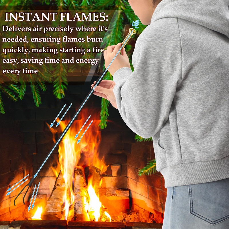 - Ease of Use: the fire pit tools with blowpipe is easy to use; Simply insert the fireplace poker into the fire and blow through the brass mouthpiece to keep your fire alive; It's simple, effective, and an essential tool for fire pit, fireplace, or campfire