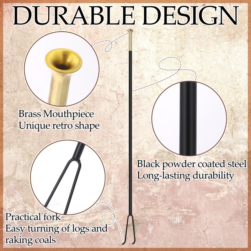 - 2-In-1 Design: this fire poker is not just a fire poker, but also a blowpipe! The design encourages airflow to the heart of your fire; Just put the end of the poker into the fire and blow through the brass mouthpiece