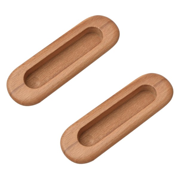 MOROBOR 2PCS Oval Wood Recessed Concealed Handle, Embedded Design Sliding Door Handle Wood Cabinet Pulls Flush Sliding Closet Door Pulls for Sliding Barn Bypass Door Wardrobe Drawer Pulls