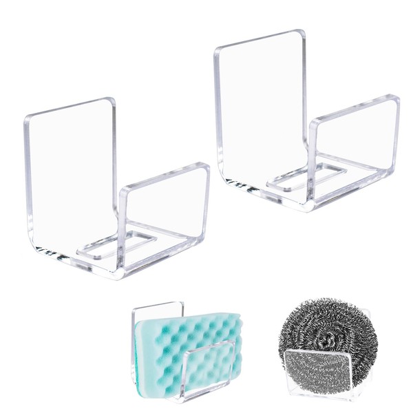 MOROBOR Adhesive Sponge Holder, 2pcs Acrylic Dish Sponge Holders for Sink Soap Sponges Rack Premium Premium Rustproof Hanger Kitchen Accessories/Clear