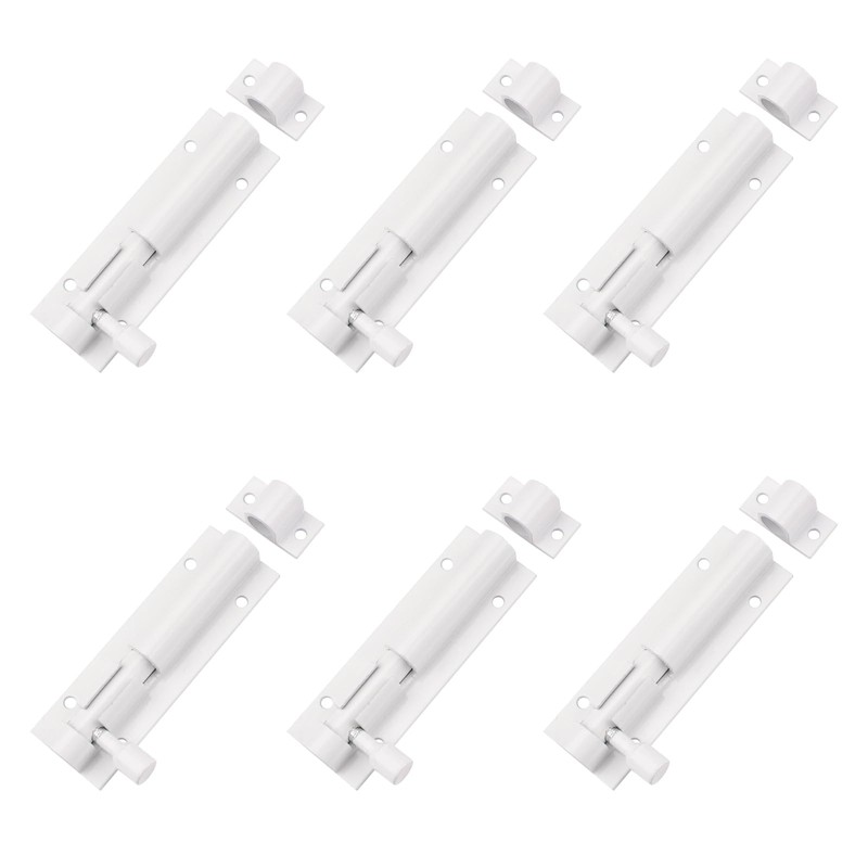 Morobor Door Security Slide Latch Lock, 3inch Thickened Stainless Steel Sliding Door Lock with Screws Slide Door Bolt Lock for Home Yard(White-6PCS)