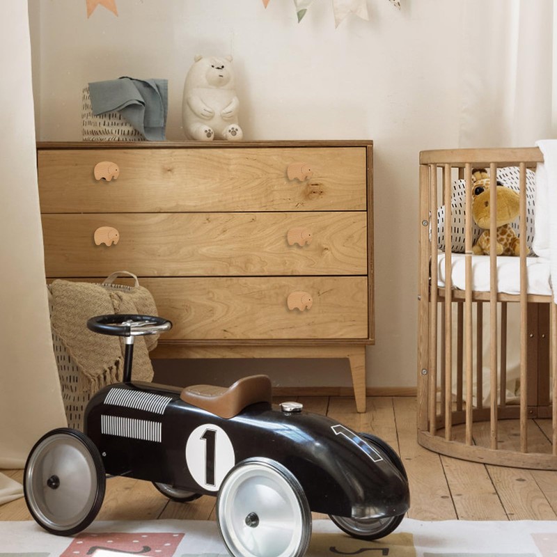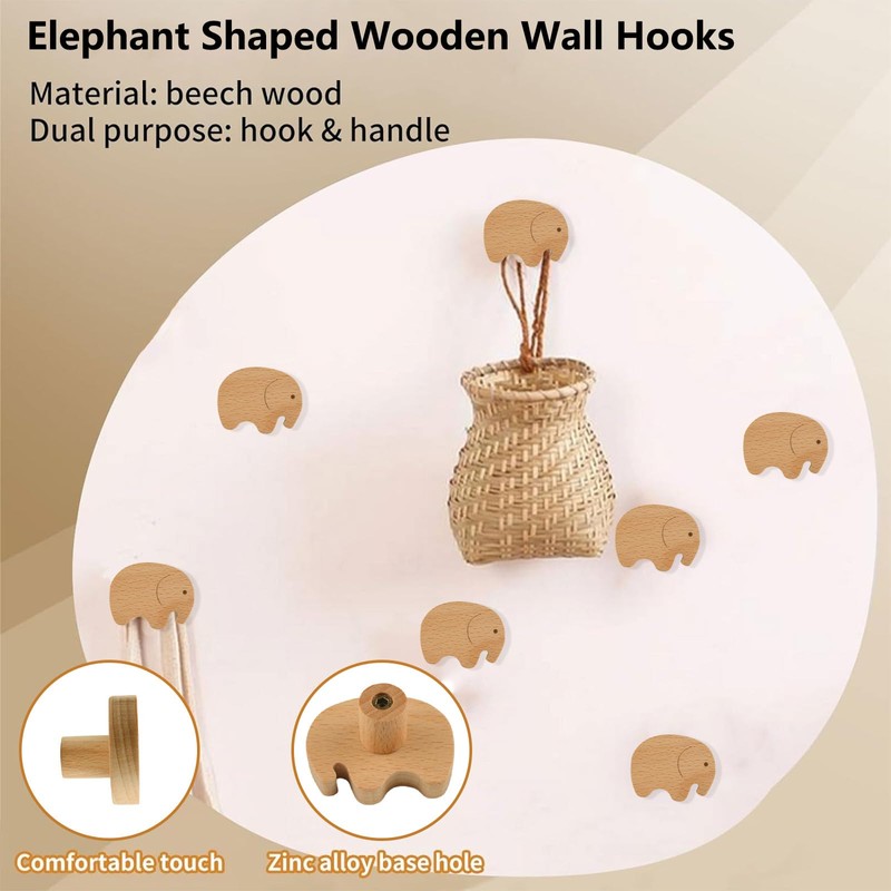 MOROBOR Elephant Shaped Wooden Knobs, 6pcs Single Hole Beech Wood Handles Drawers Cupboard Cabinet Pulls with Screws& Expansion Tube