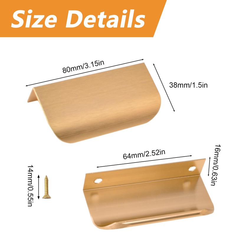Our Finger Edge Pulls are made from high quality Aluminum alloy material, with fashion brushed gold color finished, Ideal choice for your contemporary home design. Widely used for cabinet door and drawer, classic and match addition to any home, help you create a stylish and complete look.