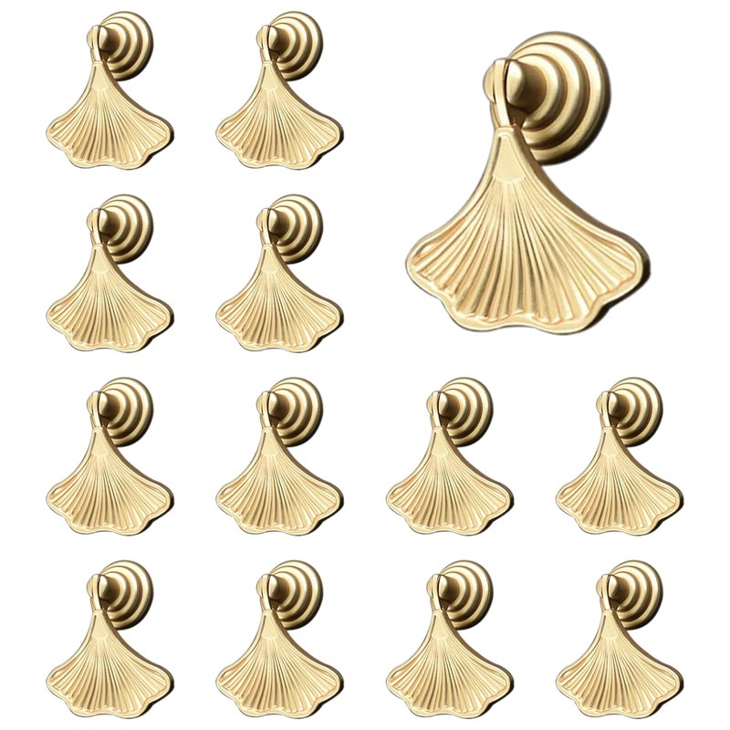 MOROBOR Ginkgo Leaf Shape Knob Handles, 12 PCS Golden Drop Pendant Pull Handle,Hardware Drawer Single Hole Handle for Wardrobe Cupboard Closets Cupboard