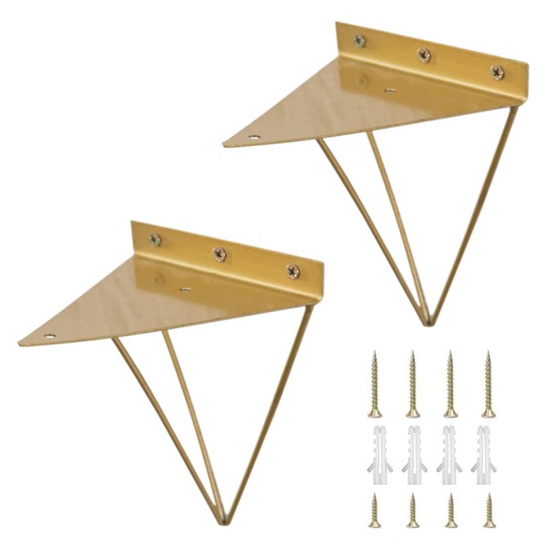Morobor Hairpin Triangle Shelf Brackets,2pcs Shelf Brackets Metal Hairpin Brackets, Shelves Heavy Duty Support Triangle Decorative Metal Shelf Brackets with Screws (Gold)