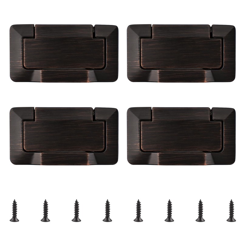 MOROBOR Pocket Doors Drawer Handle, 4pcs Zinc Alloy Flush Pull Knobs Red& Black Hidden Concealed Furniture Handle with Screws for Cabinets Closets Drawers