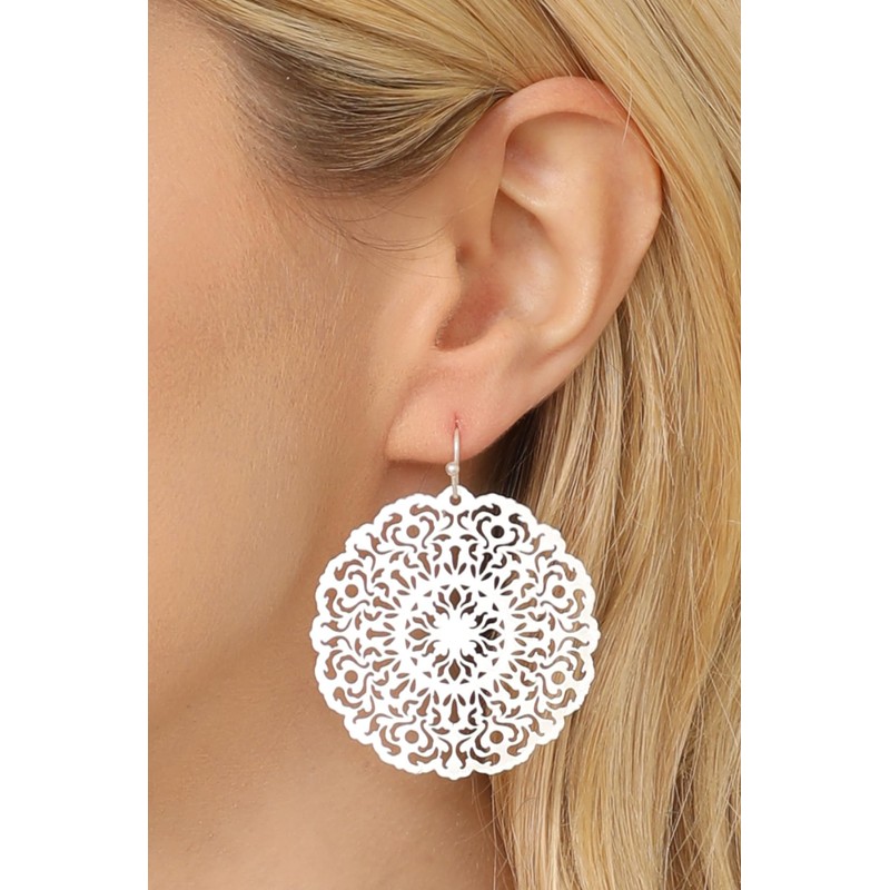 | Color: | Round Filigree Hook Earrings - Matte Silver |