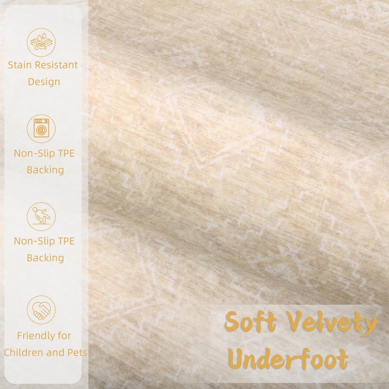 Moroccan Large Area Rug 5x7 - Soft Machine Washable Geometric Boho Distressed Farmhouse Rug Morden Stain Resistant Indoor Floor Carpet for Bedroom Dining Table Nursery Home Office (5 x 7, Beige)