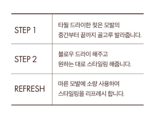- Usage Instructions: Spray onto towel-dried hair and then dry. Do not rinse out.