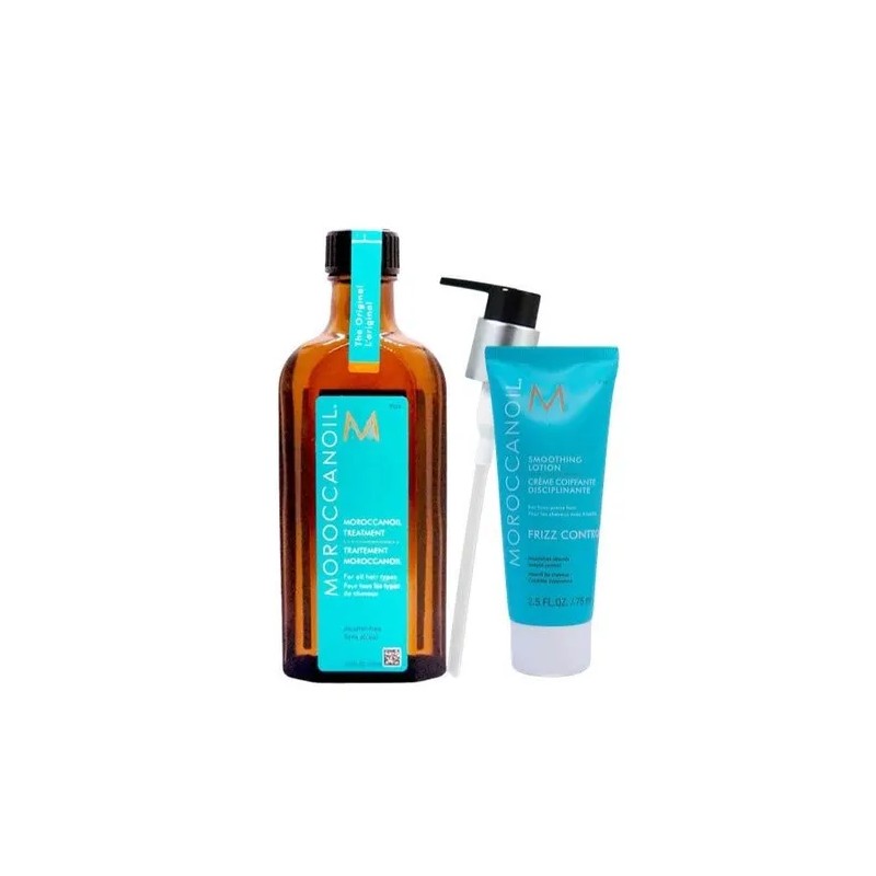 Discover the perfect duo for your hair care routine with the Moroccan Oil Treatment and Smoothing Lotion. Designed for all hair types, these products offer nourishment, hydration, and smoothness for silky, manageable hair.