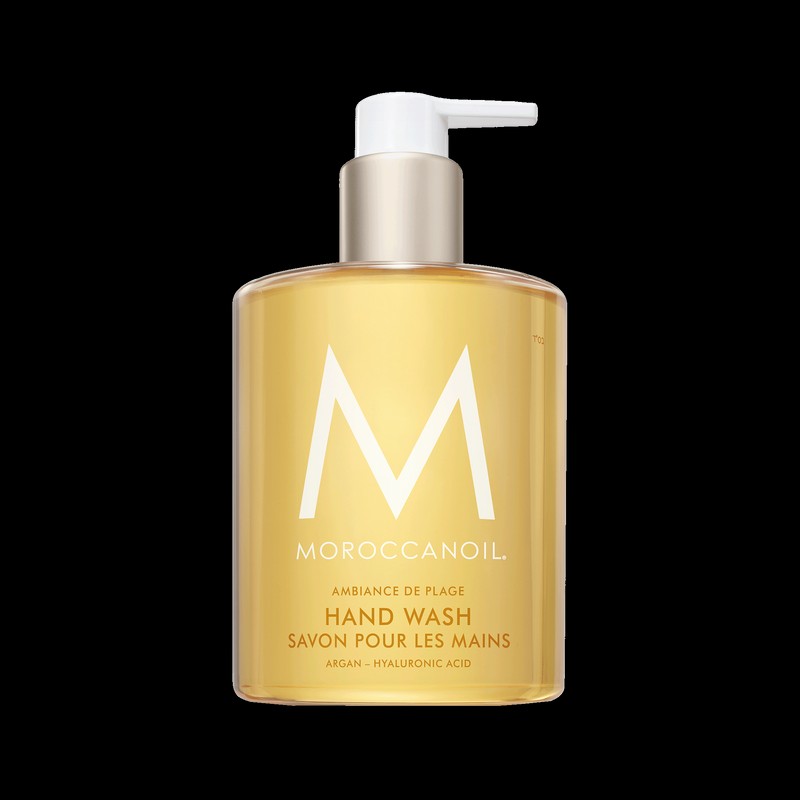 Moroccanoil Hand Wash Ambiance de Plage 360ml is a skincare-inspired formula infused with antioxidant-rich argan oil and hyaluronic acid to hydrate skin and lock in moisture, available in Mediterranean-inspired scents and packaged in a recyclable bottle.