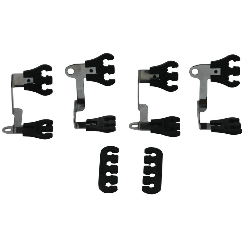- Includes eight 2-hole looms, two 4-hole separators, and four chrome plated brackets which secure to valve cover bolts