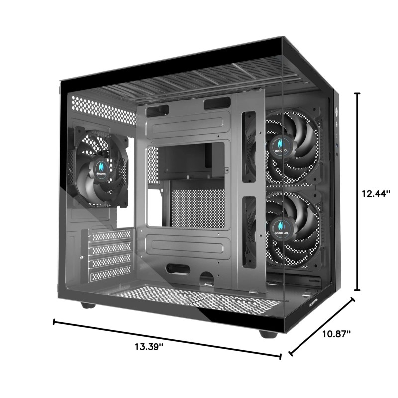 MOROVOL MATX PC Case,270° Panoramic Tempered Glass Panel Gaming PC Case,3 Fans Pre-