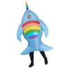 - El disfraz de Narval para adultos incluye 1 traje de Narval gigante azul y arco iris con ventilador y paquete de baterías (requiere 4 pilas AA y no incluidas)