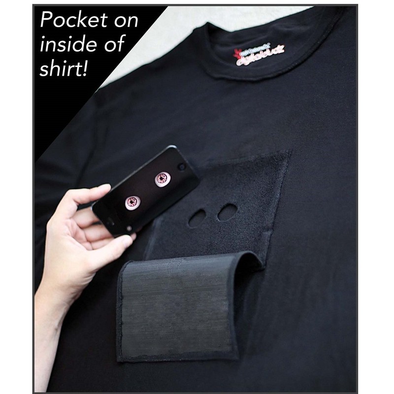- JUST ADD SMARTPHONE: The velcro pouch on the side of the Haunted Mansion Portrait t-shirt measures 3.75 x 6.1 inches, and will fit most mobile devices inc. Itouch,iphone,Samsung Galaxy S3, Note