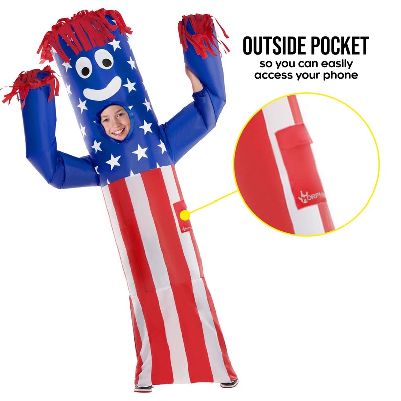 Morph Wacky Waving Kids Inflatable Tube Guy, 4th of July Costume, Kids Inflatable Costume