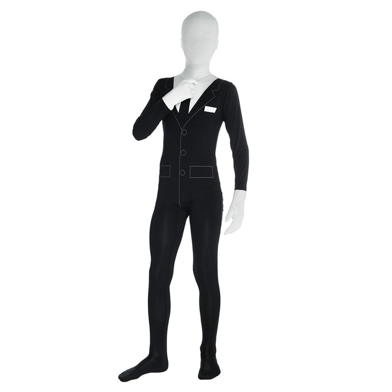 - HIGH QUALITY SLENDERMAN COSTUME: All out Kids Morphsuits are CE tested, and have a quick release velcro hood for easy removel. Our high quality material means a 4-way stretch, with a strong zip and re-enforced stitching at stress points. Hand wash in cold water, air dry and you're good to go again