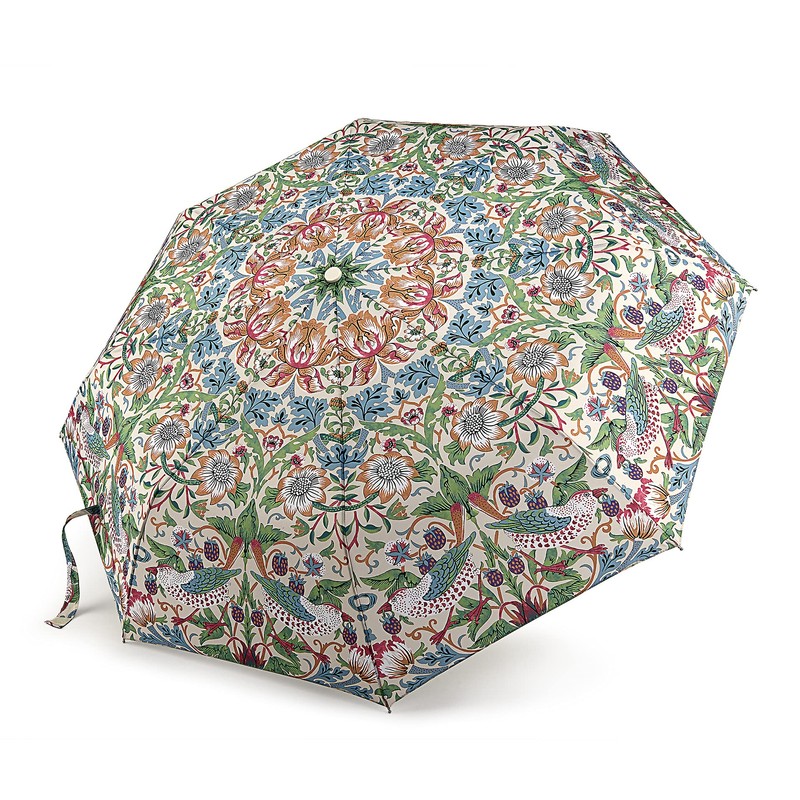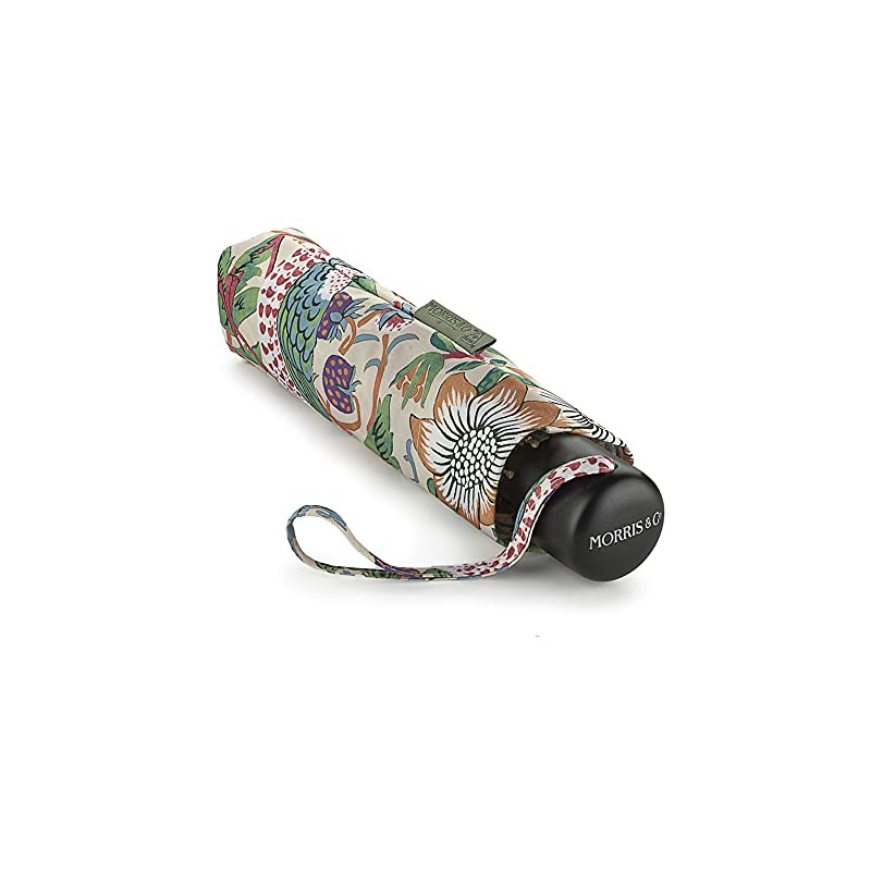 Morris & Co. Minilite Umbrella, Strawberry Thief Cream Print, Strong Lightweight Wind Resistant Frame