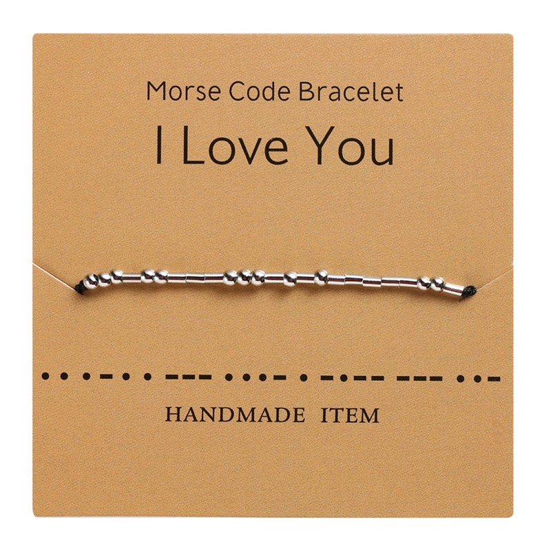 Morse Code Bracelet Beads on Silk Cord Bracelet Silver Secret Code Bracelet Gift (I love you)