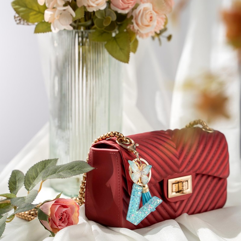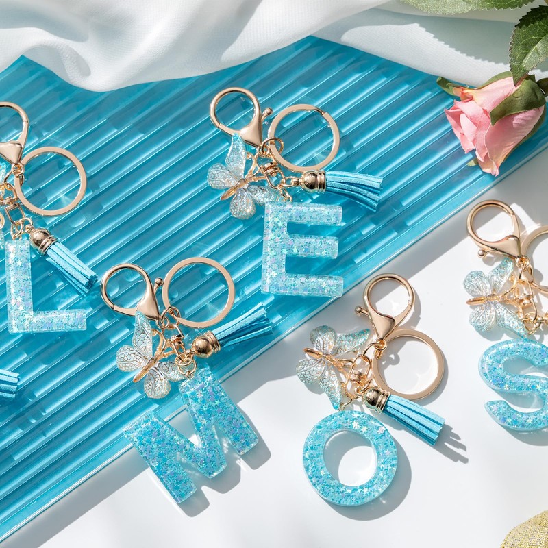 - Initial keychain material: The butterfly keychain is made of high-quality resin. The resin material has high hardness and is not easy to deform and break. It is equipped with a butterfly pendant and tassels. The keyring letter has a star-shaped sequin inside, which adds a fashionable atmosphere to your bag