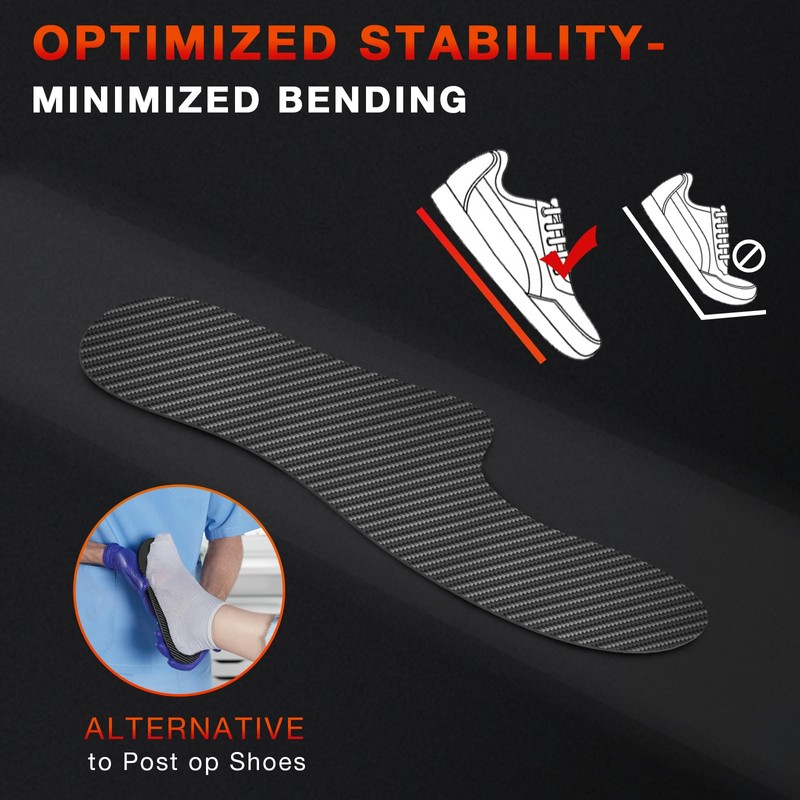 - ✅ PURPOSE OF USAGE - The carbon cleat insole was designed to allow minimized bending with optimized stability, reduces flexibility and decreases the range of foot motion, arthritis shoe insert stiffens the insole enough to keep your toes from over-extending, help reduce foot pain and foot recovery. Suitable for hallux rigidus, limitus, turf toe, toot tractures, arthritis, morton’s toe treatments. Also it can be used as Post Op Shoe Alternative.