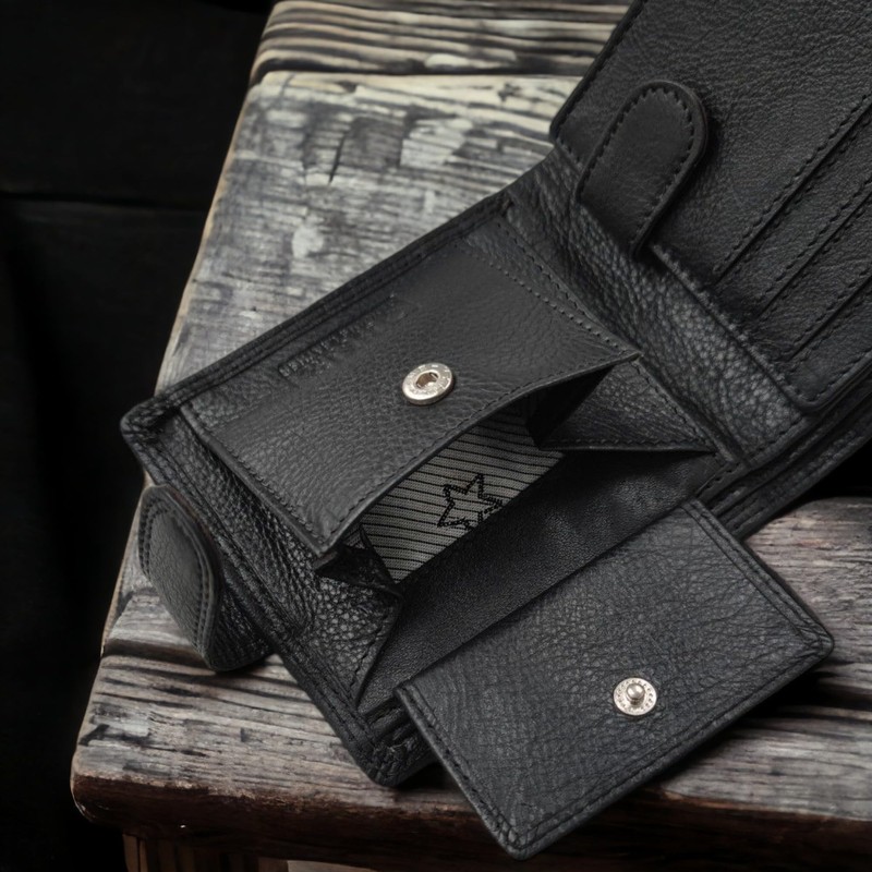 - COMPACT DESIGN: Making this wallet superb for travel and everyday use. Keeping all your cards safe and organized. It holds multiple cards and lots of cash. 2 Banknotes compartment with a divider so that you can separate your receipts from the banknotes or your smaller banknotes from the larger ones. Handsome black leather lined with silver coloured quality lining and in a neat contrast & clean matching stitching inside and out.