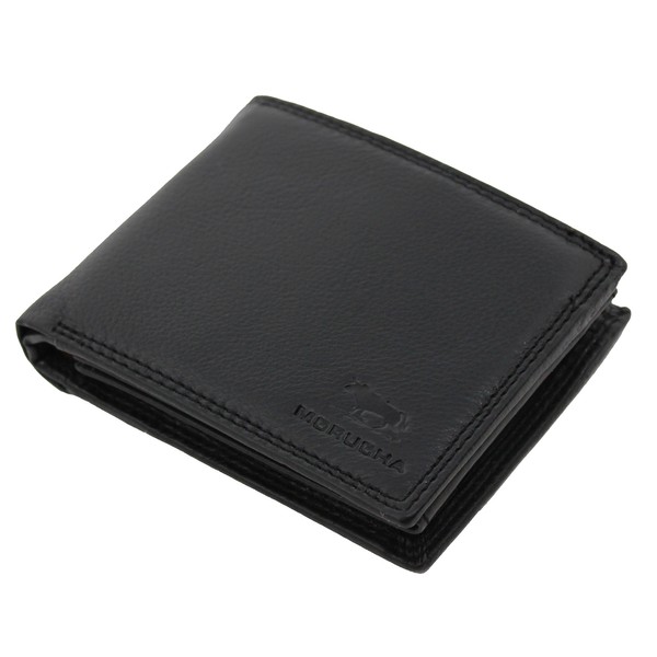 MORUCHA Mens RFID Blocking Real Leather Trifold Passcase Wallet M55 (Black)