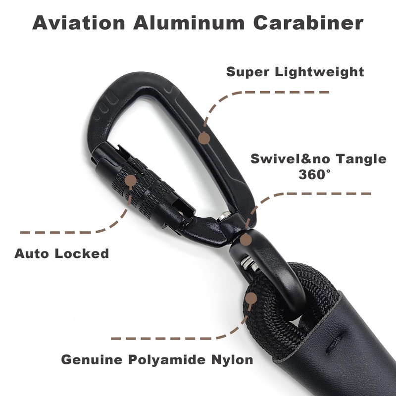 - 【Autolocking Aviation Aluminum Carabiner】MORXIL dog leash features a super lightweight and secure auto locking carabiner, made from Aviation Aluminum. You can operate it with one hand. Simply twist the barrel and press the spring, and it opens. When you release your hand, the carabiner will automatically lock immediately. First-rate safety for you and your furry friends.