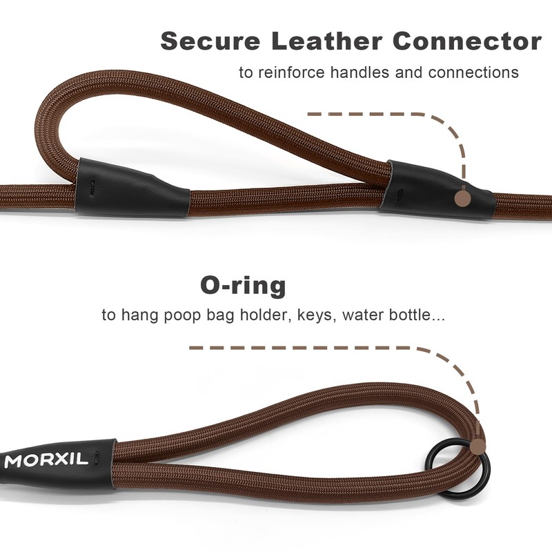 MORXIL Rope Dog Leash with Two Handles, 6 Foot Heavy Duty Dog Leash with Aviation Aluminum Auto Locking Carabiner, Strong Nylon Dog Lead for Small, Medium, Large Dogs (Brown, 6FT-Two Handle)