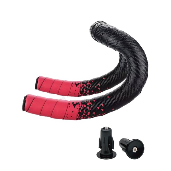morytrade Bar Tape Road Bike Drop Handle Gradient with Aluminum Bar Ends (Red/Black)